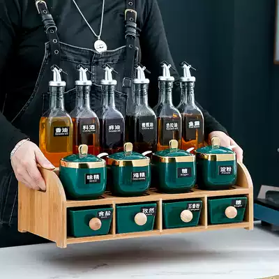 Kitchen salt and sugar seasoning box combination set Household ceramic seasoning jar oil bottle Nordic light luxury seasoning storage box