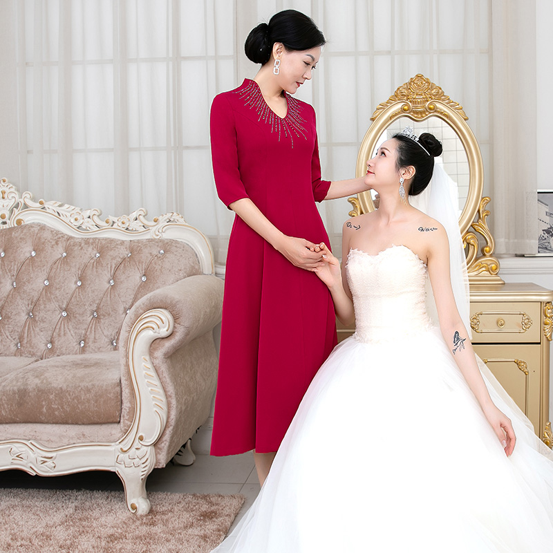 Wedding mom gown in old age women's dress 2022 new young happy mother-in-law wedding banquet Noble Ocean Dress Summer