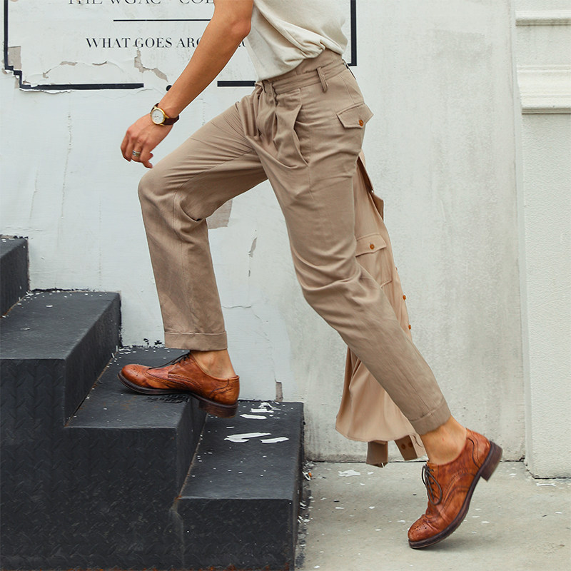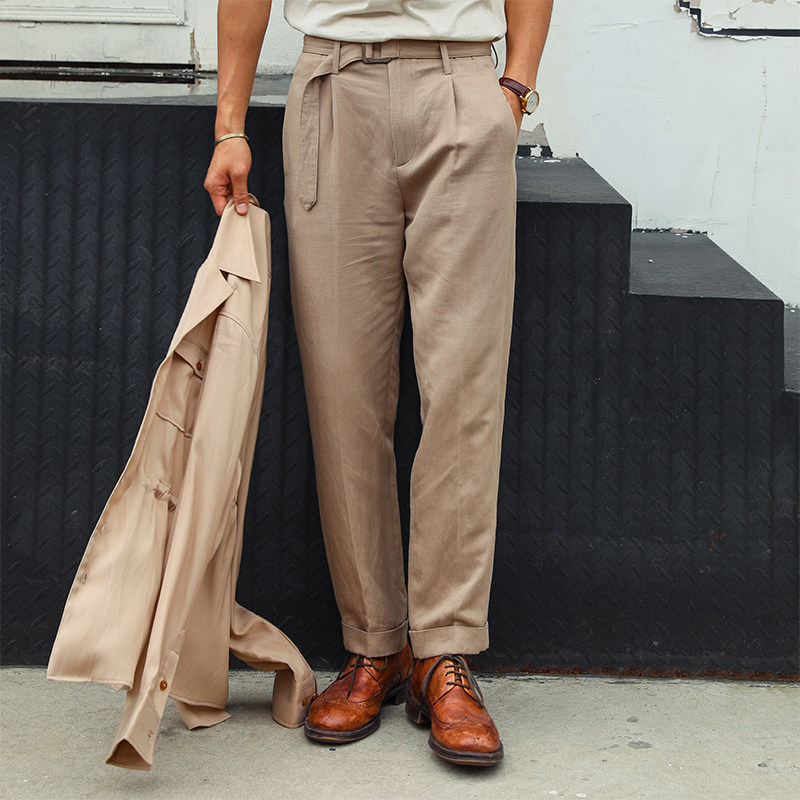 SOARIN Retro Yuppie Men's Clothing Cotton Linen 90% Pants Original Design Sensation Casual Straight Silo Western Dress Pants Thin