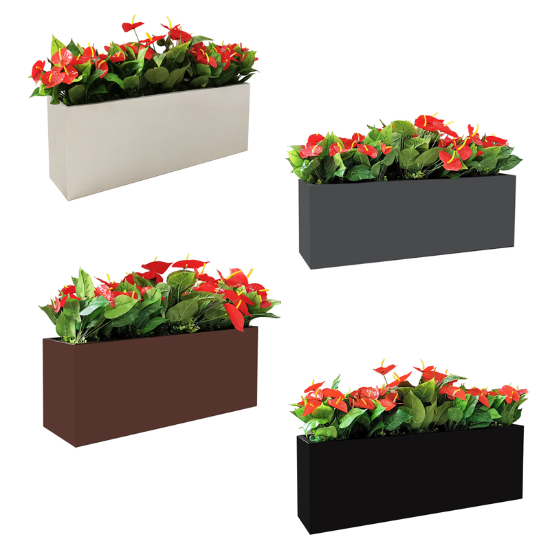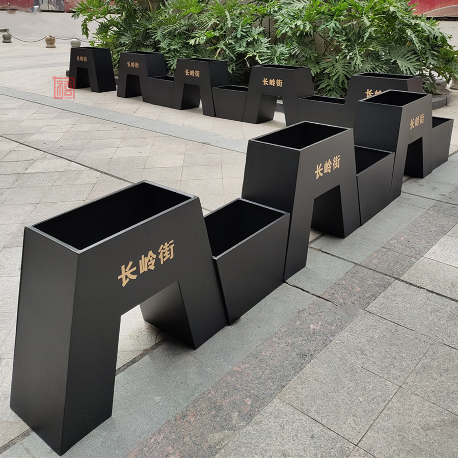Set For Outdoor Iron Art Flower Box Commercial Street Sample House Display Center Stainless Steel Iron Art Partition Flower Groove Rectangular Metal Flower Bed