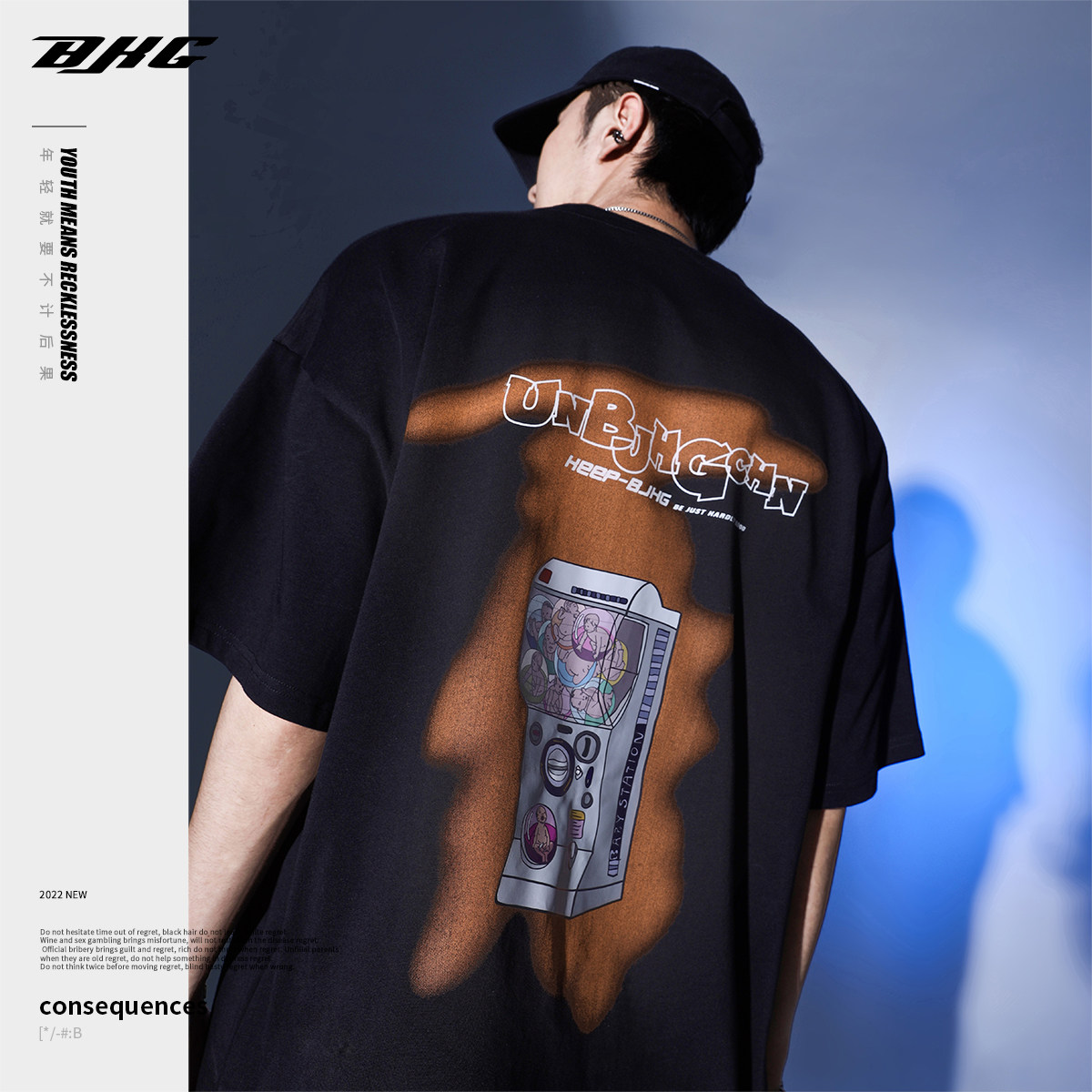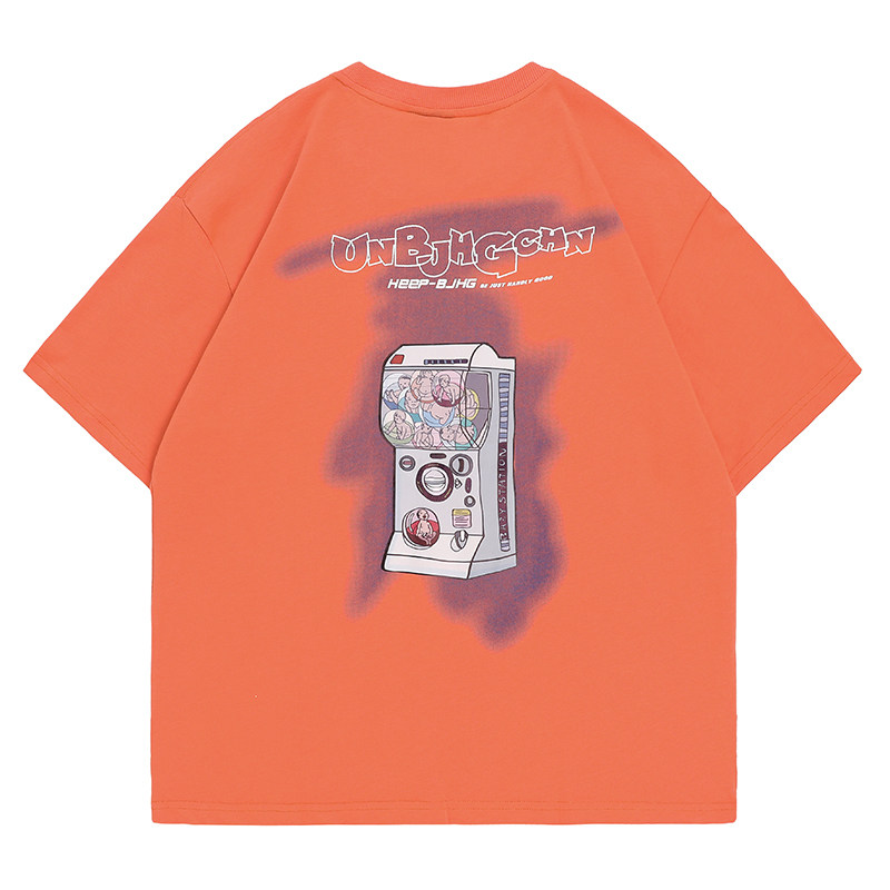 BJHG self-made summer twisted egg doll machine printed short-sleeved T-shirt men's tide brand couple loose fresh half-sleeved special price