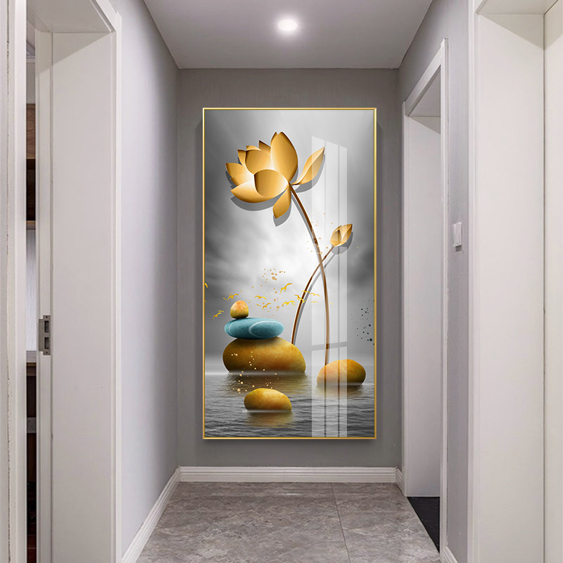 Xuan Guan Decoration Painting Lotus Pond Moon Color Light Extravagant Corridor Aisle Wall Mural Modern Brief vertical version Living room crystal porcelain hanging painting
