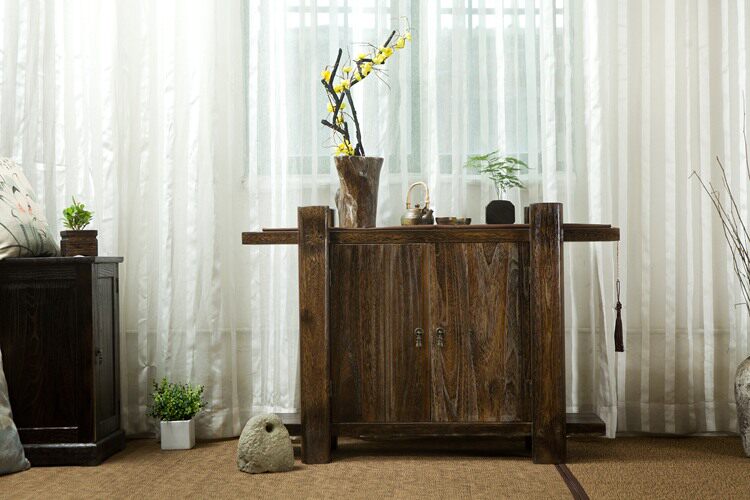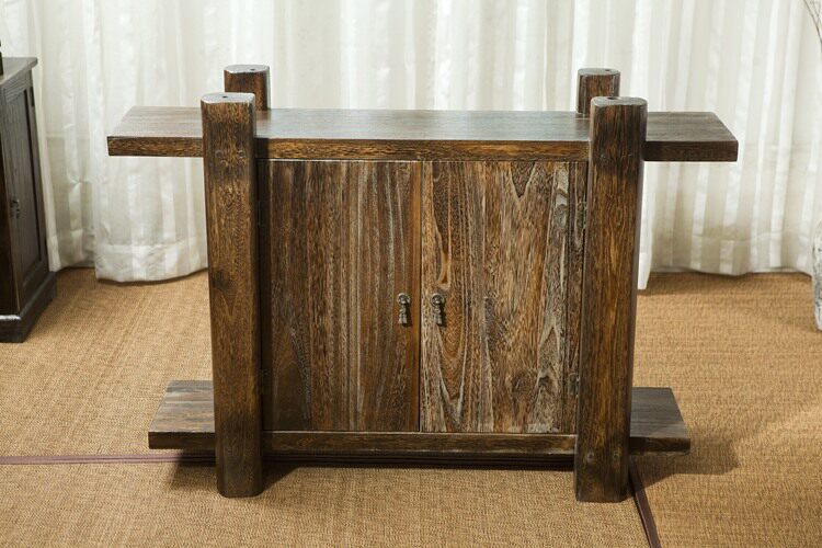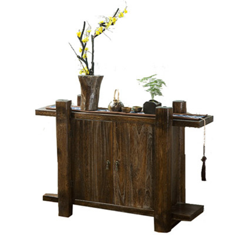 New Chinese-style solid wood entryway cabinet double door storage cabinet storage cabinet living room cubicle dining cabinet tea cabinet burnt paulownia wood