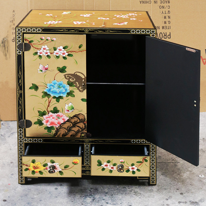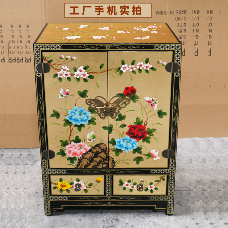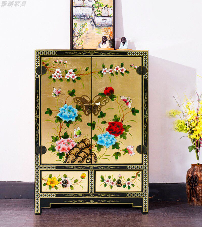 New Chinese style hand-painted gold foil door shoe cabinet living room partition decoration storage porch cabinet painted furniture storage cabinet