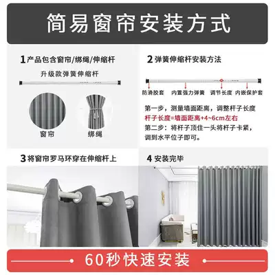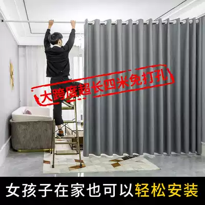 Door curtain partition window non-perforated telescopic rod installation living room windshield home bedroom shielding curtain fabric divided room