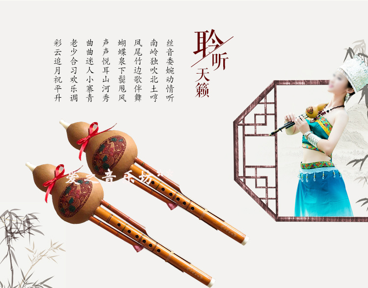 Yunnan natural phoenix tail bamboo cucurbit musical instrument easy to learn B flat C tone double tone beginners practice gourd Silk