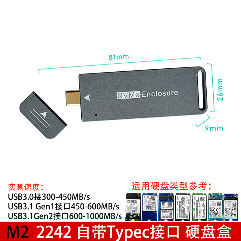 Kaixia Toshiba Mobile SSD Box M2 2230 2242 2280PCIENVME to USB3 1Typec