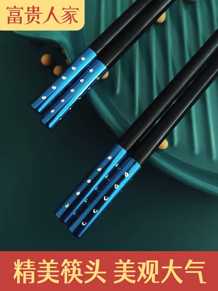 Rich people's alloy chopsticks household tableware set non-slip non-mold antibacterial fast son 10 pairs of high-temperature-resistant public chopsticks