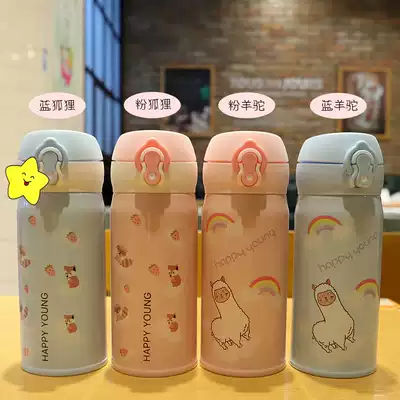 Thermos Cup girl cute students portable small sweet children creative personality lettering water cup simple fresh Forest Department
