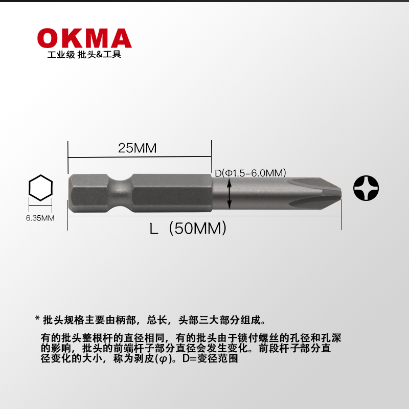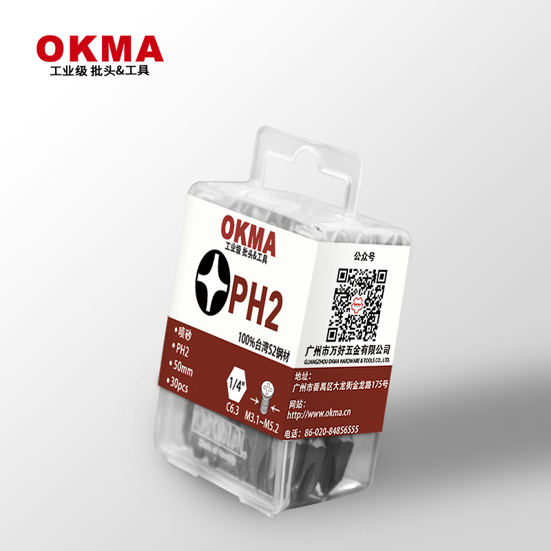 OKMA ten thousand Good boxed 30 Taiwan S2 steel 50 long single head cross Batch Head High hardness abrasion resistant material