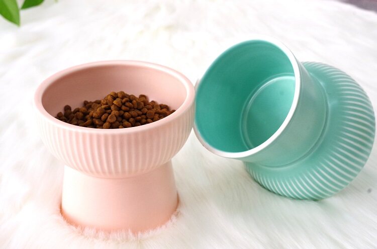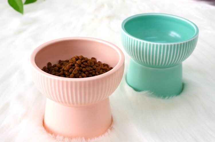 Ceramic cat bowl Japanese cute tall cat food bowl striped pet drinking water bowl cat food bowl protection cervical vertebrae cat bowl