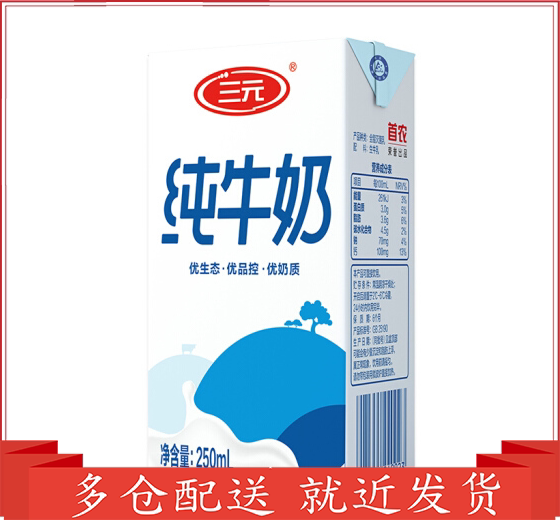 Triyuan pure milk 250mlx24 box 2 box or 16 box*3 box small square white whole milk random hair