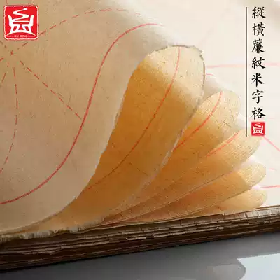 Guding burst pure bamboo pulp rice character grid raw edge paper calligraphy special 1200 sheets of rice grid thickened with grid practice rice paper Half-raw and half-cooked square practice brush character handmade paper Beginner Yuan book paper