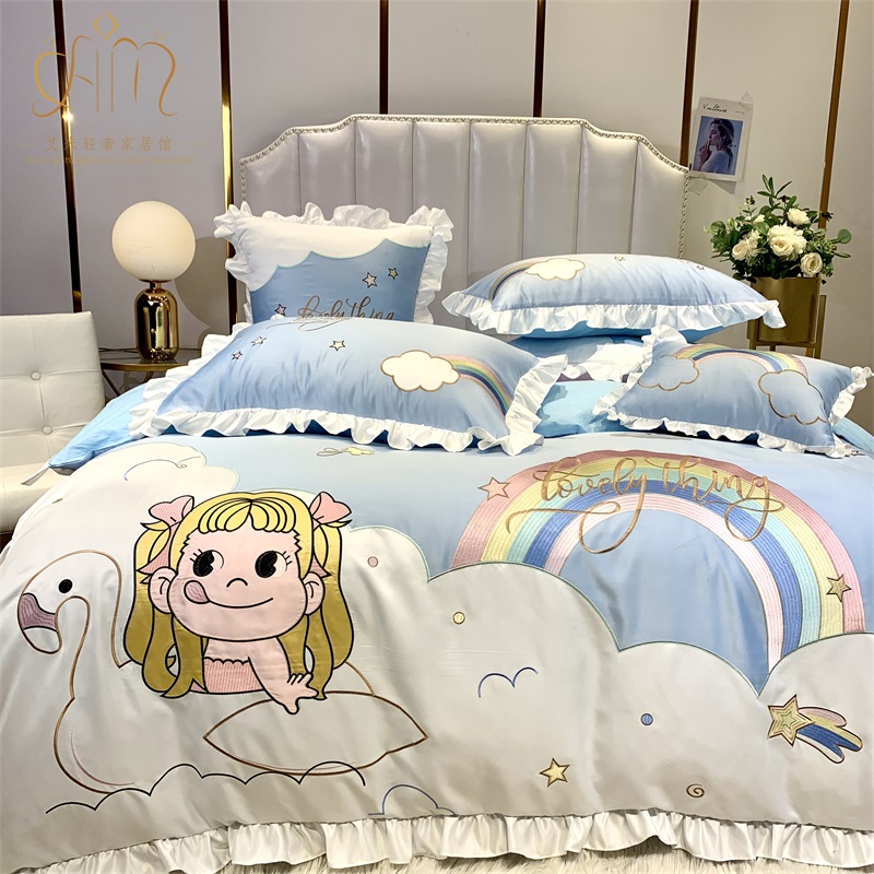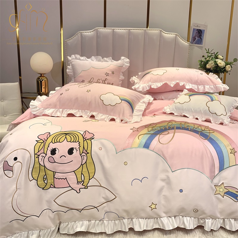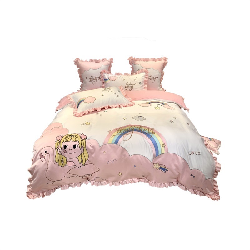Cute princess style rainbow cotton four-piece set girl heart embroidery 1 8m quilt cover bedding cotton bedding 4
