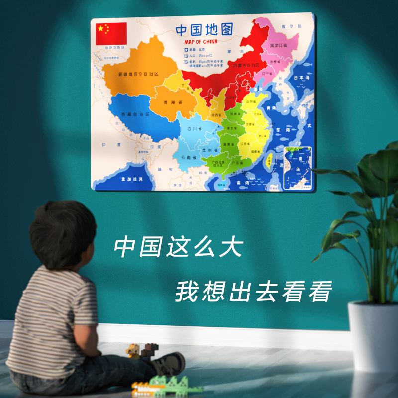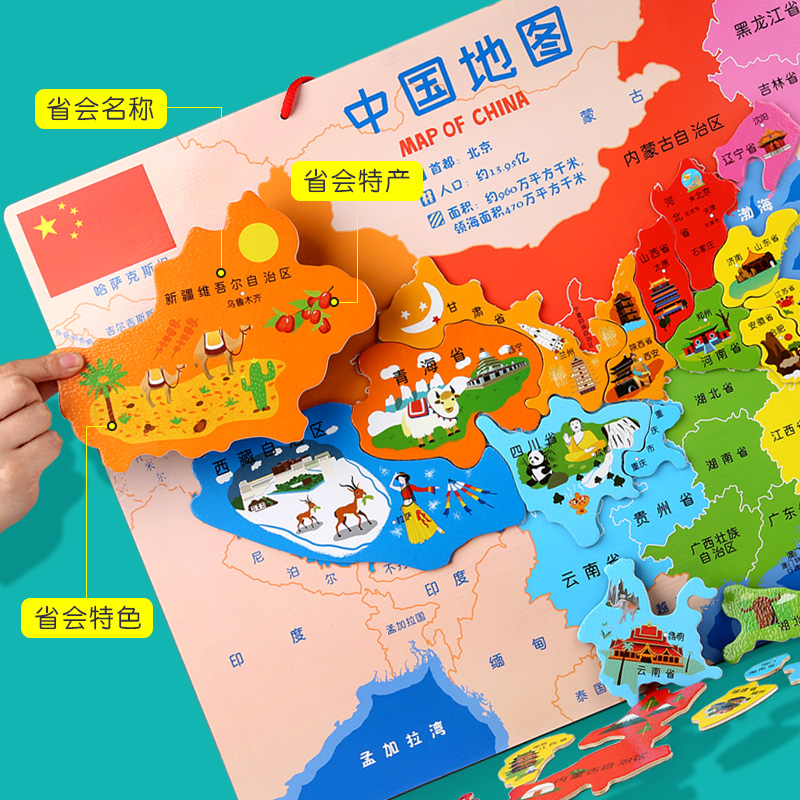 Large size magnetic China map puzzle children's educational toys for primary school students teaching aids wooden magnetic puzzle