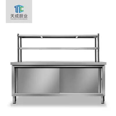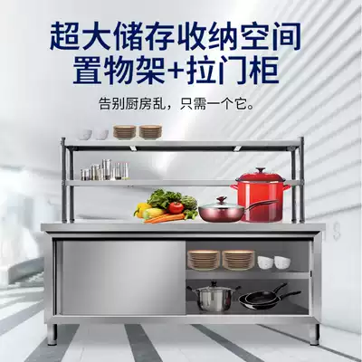 Stainless steel sliding door Workbench kitchen storage double-pass single-pass Lotus cutting table double shelf storage dish cabinet