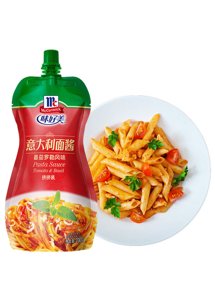 (Squeezed) Tomato Basil Flavored Pasta Sauce 230g (Squeezed) Tomato Basil FlavorEd Pasta Sauce 230g*2 Bags Pasta Sauce 230g + McCormick Black Pepper Sauce 230g Pasta Sauce + McCormick Tomato Sauce 330g Pasta Sauce + McCormick Tomato Sauce 330g + Black Pepper Sauce 230g (Squeezed) Tomato Basil Flavored Pasta Sauce 230g*3 Bags