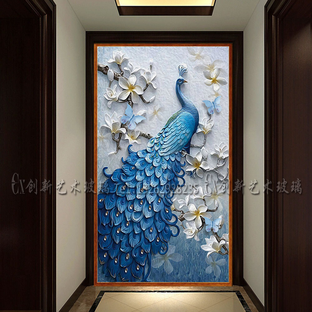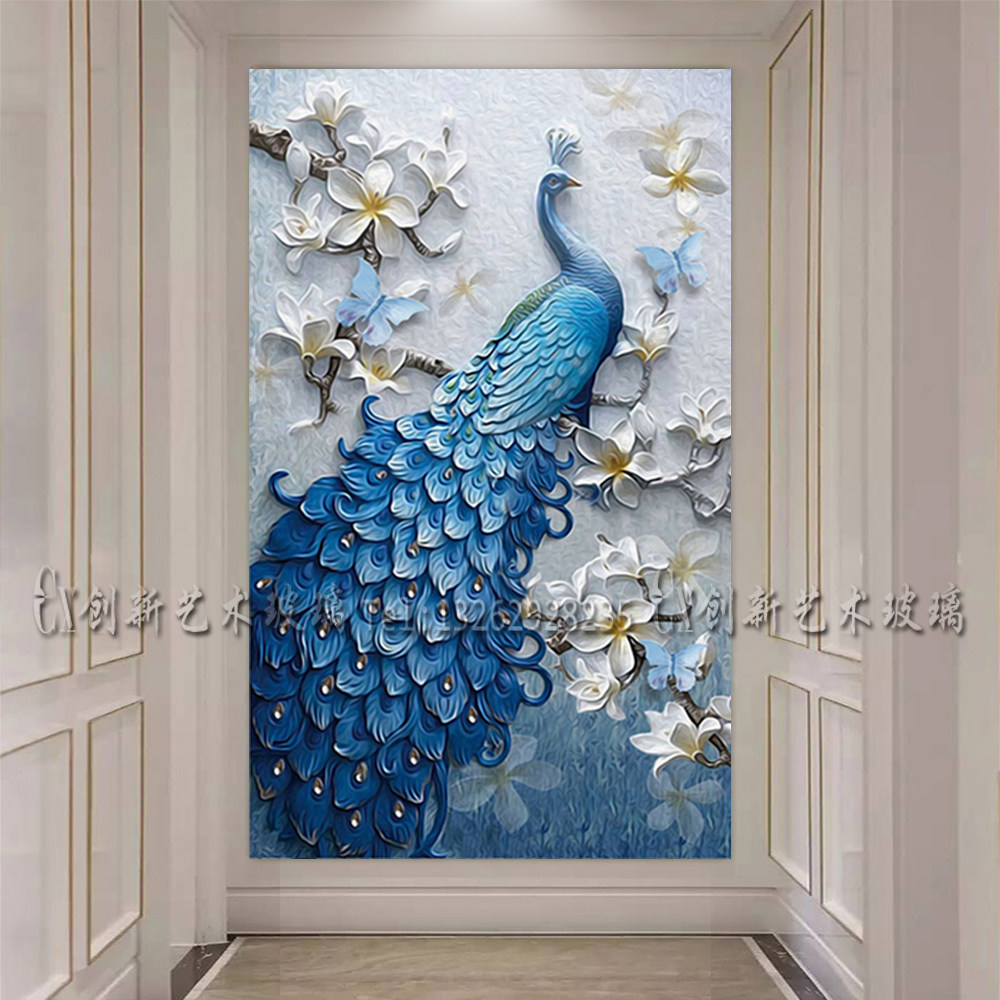 Art Glass Genguan Aisle Background Decoration Chinese Living Room Partition Screen Frosted Relief Process Custom Peacock-Taobao