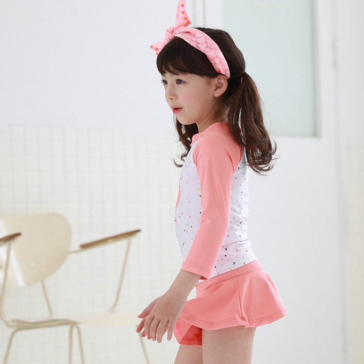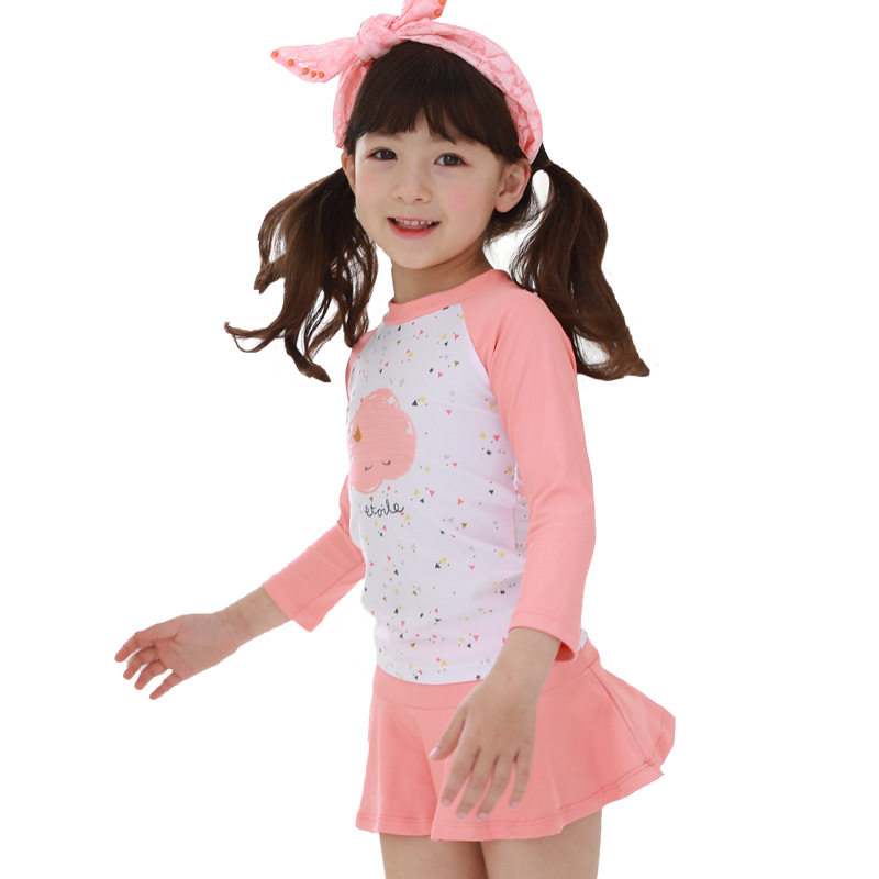 Korean children's swimsuit girls two-piece long-sleeved skirt swimsuit middle and small children sunscreen swimwear baby quick-drying hot spring