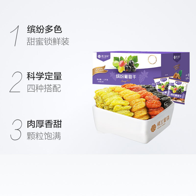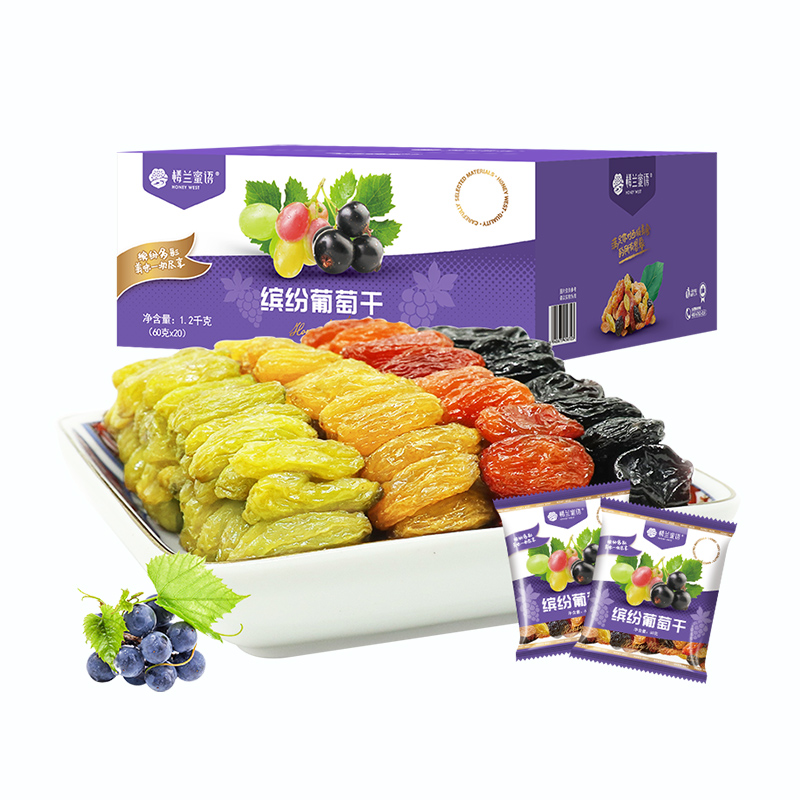 Loulan Honey language four-color raisins blackcurrant Xinjiang specialty large ready-to-eat packets pregnant women and children snacks 1200