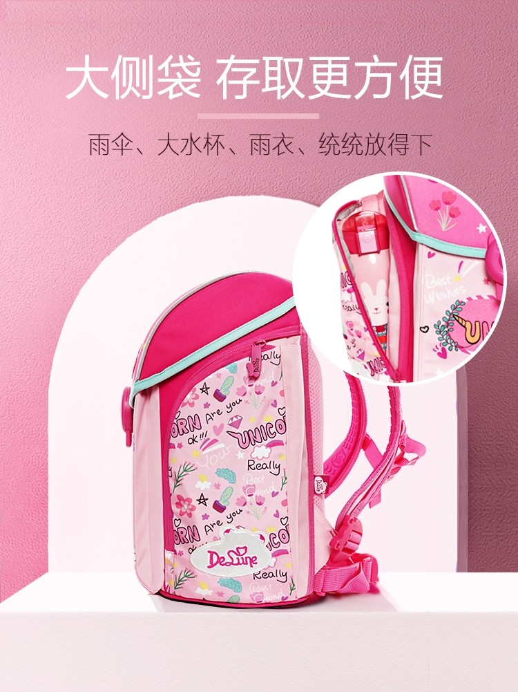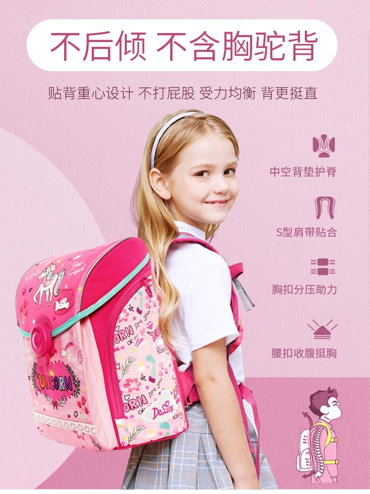 Delune school bag Primary school girl 123 to 56th grade children's load reduction crest shoulder bag large capacity