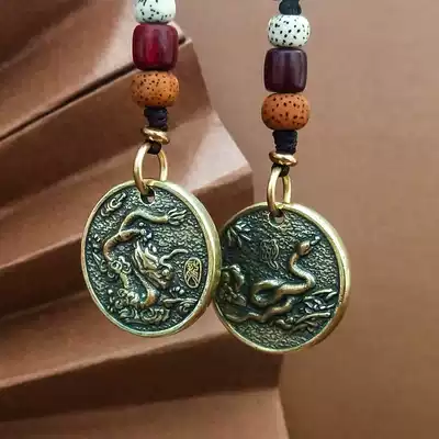 Brass car key pendant male twelve zodiac high-end hand woven chain pure copper keychain birthday gift female