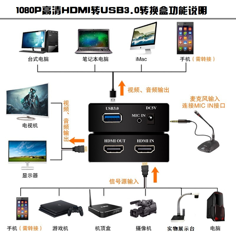 Web live broadcast equipment HDMI to USB conversion box computer acquisition card teaching physical projector booth