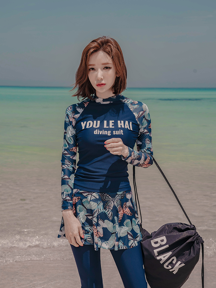 Diving suit Two style long sleeves Korean swimsuit women's summer fairy gas insinude conservative seaside sunscreen full body swimwear