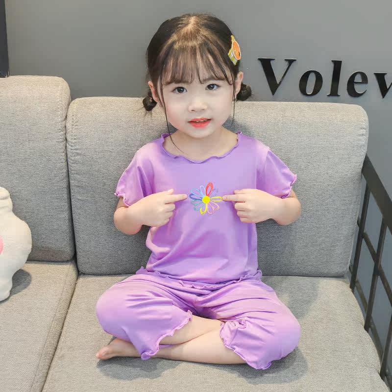 Baby short-sleeved children's girls' modal home clothes children's pajamas summer thin cotton ice silk two-piece suit