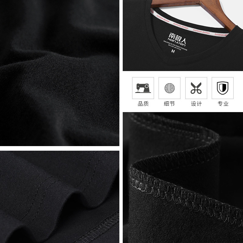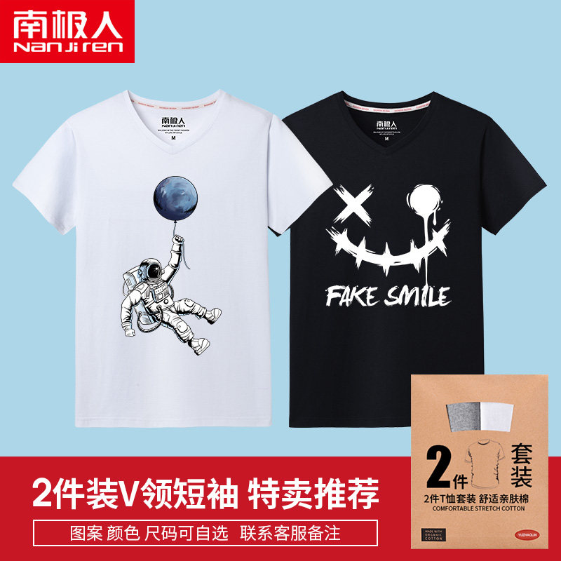 2 pieces Men's short-sleeved T-shirt pure cotton V-neck loose large size half-sleeved men's clothing Japanese trendy brand sweetheart collar handsome top