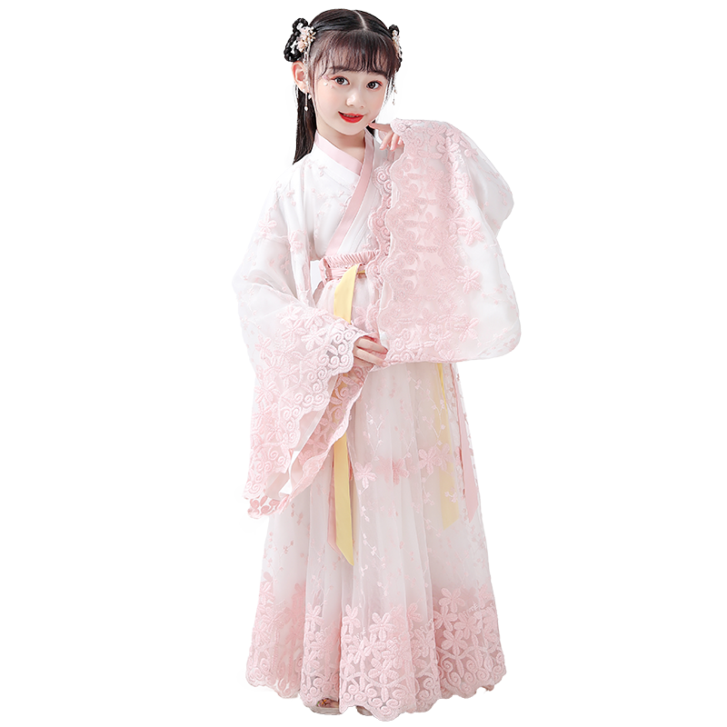 Hanfu Girl Child Spring and Autumn Chinese Wind Scout Tang Costume Fairy-Fairy Ocean Dress Girl Cherry Blossom Princess Children Summer Goosewear