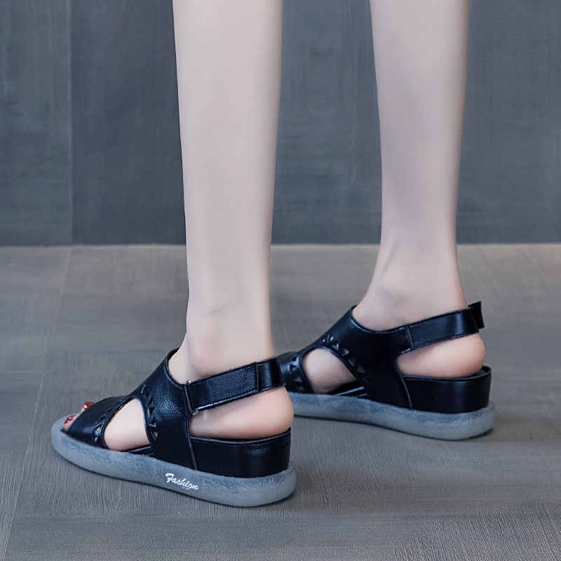 Leather sandals women's summer 2022 new all-match fashion comfortable thick bottom heightened fish mouth Roman shoes fairy style