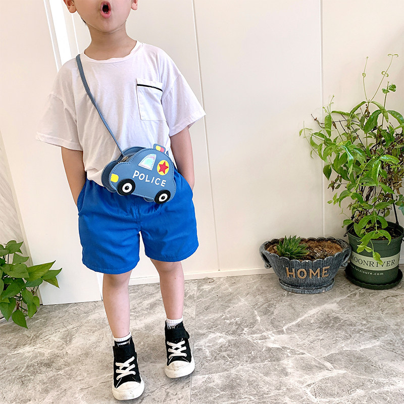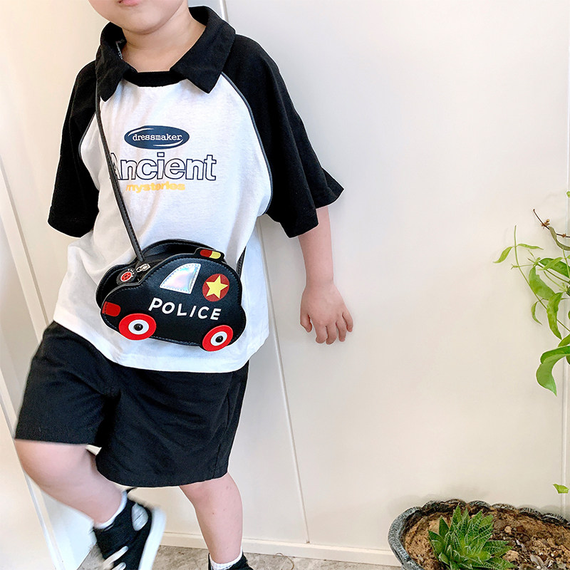 Children's Bag Boys Police Car PU Leather Satchel Bag Boys Coin Purse Messenger Bag Kids Cartoon Bag Handsome and Cool