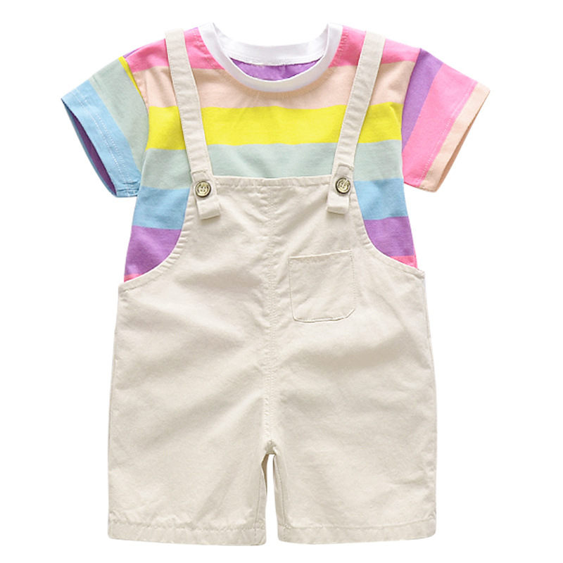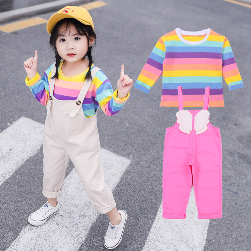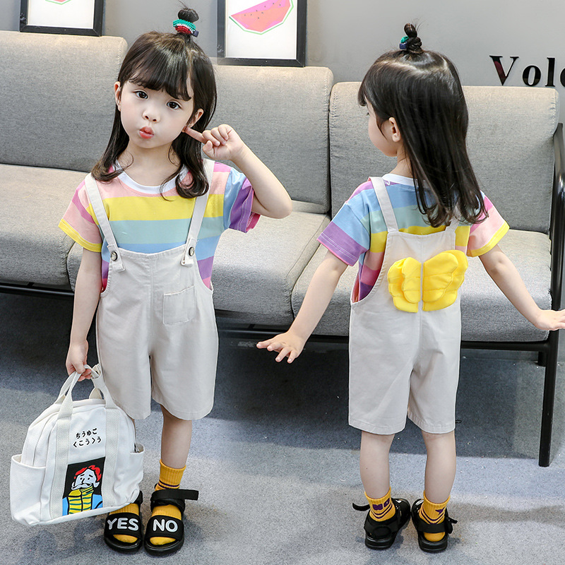 Female baby summer clothes Girls summer suit 2021 new foreign school 1 a 3-year-old child holding baby bag pants fashionable foreign school tide