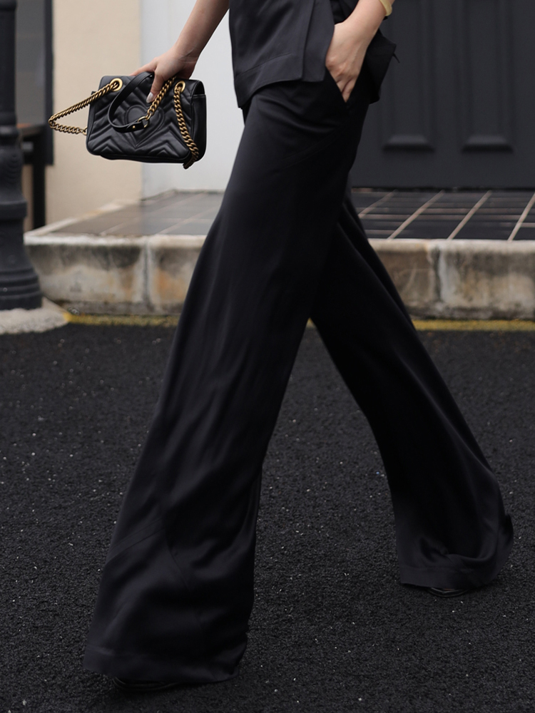 Boss Z full screen high-quality acetate fiber European and American rotary cutting tapered wide-leg flared pants for women