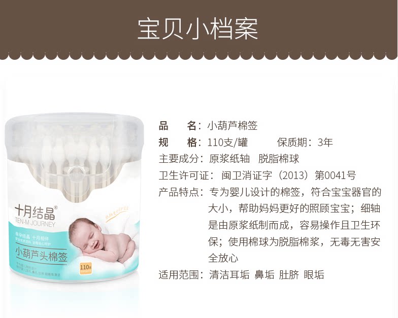 October crystallization baby cotton swab baby ear, nose and navel cleaning newborn special cotton swab double-ended spiral 110