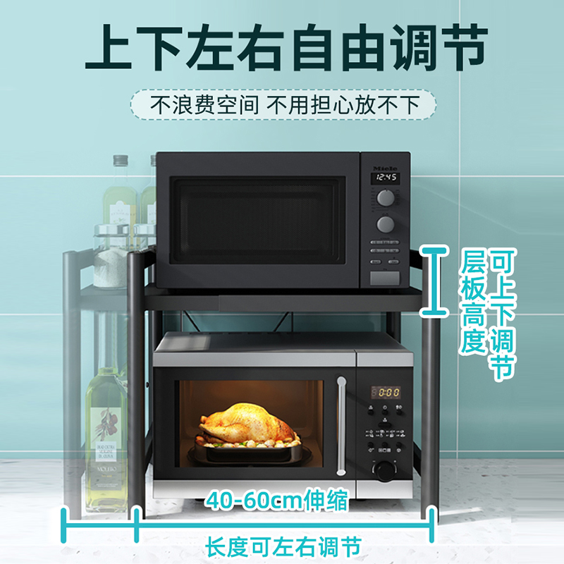 Retractable kitchen microwave storage rack Double-deck oven shelf Home countertop multi-function tabletop storage stand