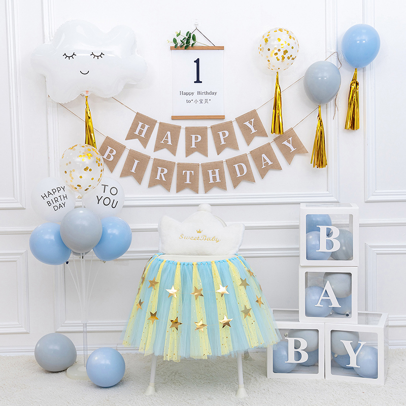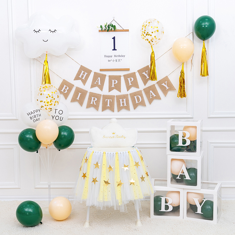 Boy girl baby 1st birthday decoration scene net red balloon small fresh hundred days banquet poster 2