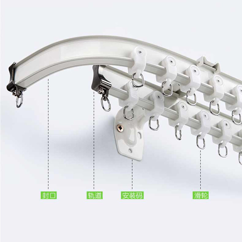 Bendable curtain rod rail rail bay window u-rail corner L-shaped side top mount monorail ultra-tulle curtain pulley bending rail