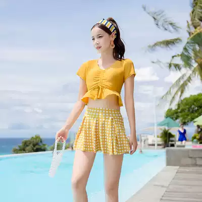 Korean small fresh girl swimsuit Girls swimsuit Middle school children student conservative skirt two-piece swimsuit