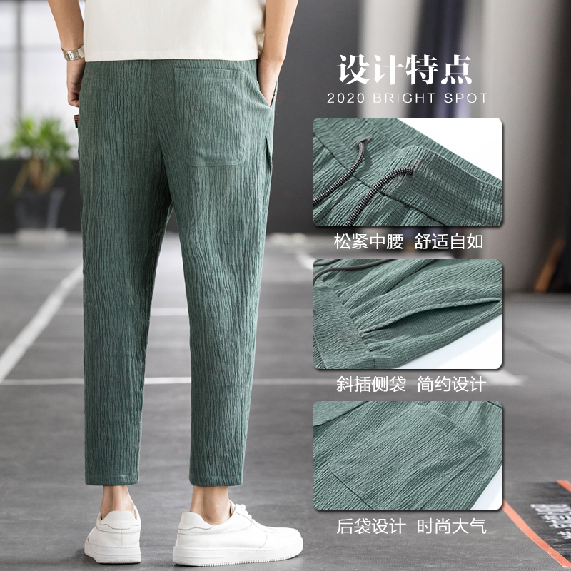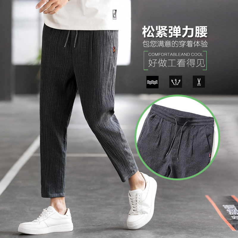 Spring Summer ultra-thin section 90% cotton linen linen pants men ice silk casual long pants wide tightness waist straight drum summer