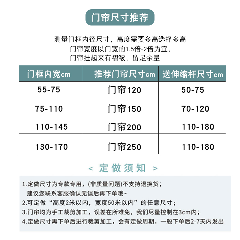 Custom size contact customer service change price spot size support (free change short) (door width 52-75cm used) curtain width 1 2 * height 1 5 m giver S number rod (door width 52 -
