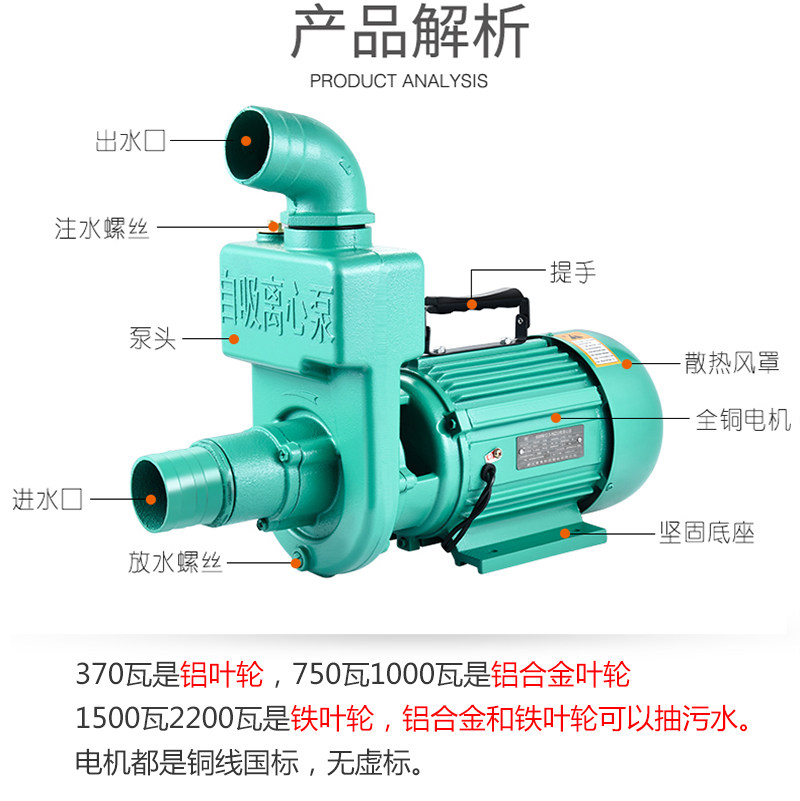 Sewage self-priming pump large flow 1 5 inch 2 inch 3 inch household 220V centrifugal pump booster pump well water pump