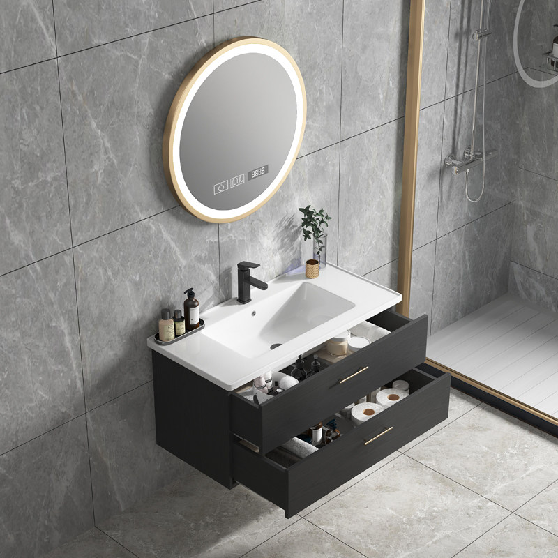 Modern minimalist solid wood bathroom cabinet combination powder room washbasin washbasin smart mirror cabinet wall-mounted