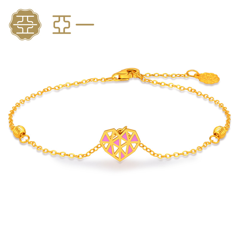 Yayi Gold Pure Gold Enamel New Xiaoyao Gold Bracelet 5G Pink Girl Bracelet Fashion Jewelry Holiday Gift
