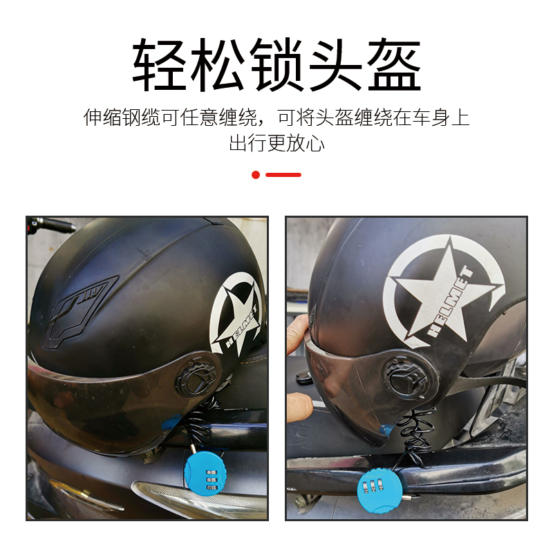 Electric car safety helmet lock climbing car bike lock coded lock wire lock portable anti-theft lock spring steel cable lock