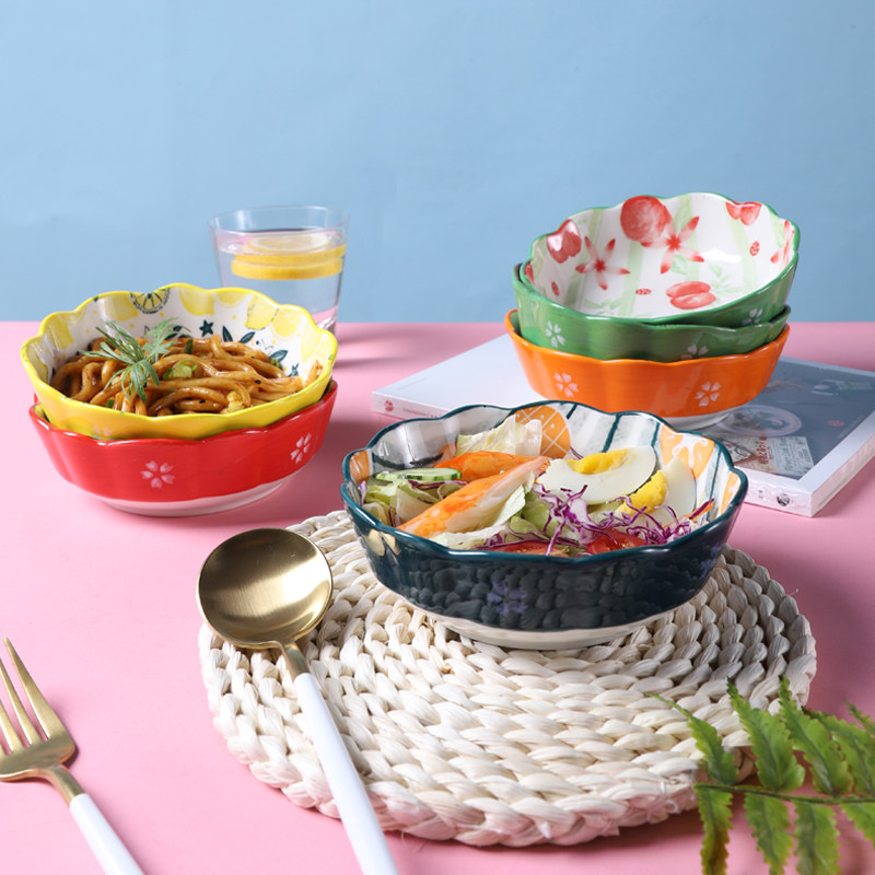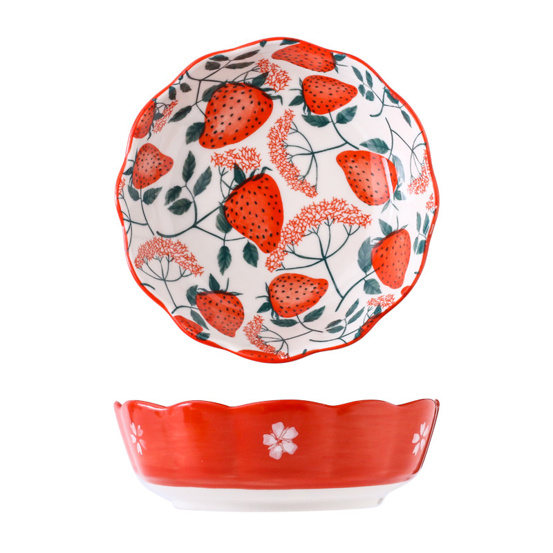 Day Style Cutlery Mesh Red Ins Creative Rice Ceramic Sweet Bowl Cute Fruit Bowl Salad Bowl Breakfast Bowl Home