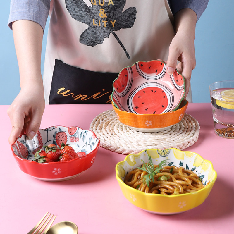6-inch salad bowl-strawberry 6-inch salad bowl-water honey peach 6-inch salad bowl-lemon 6-inch salad bowl-orange 6-inch salad bowl-pineapple 6-inch salad bowl-watermelon 7-inch pure white