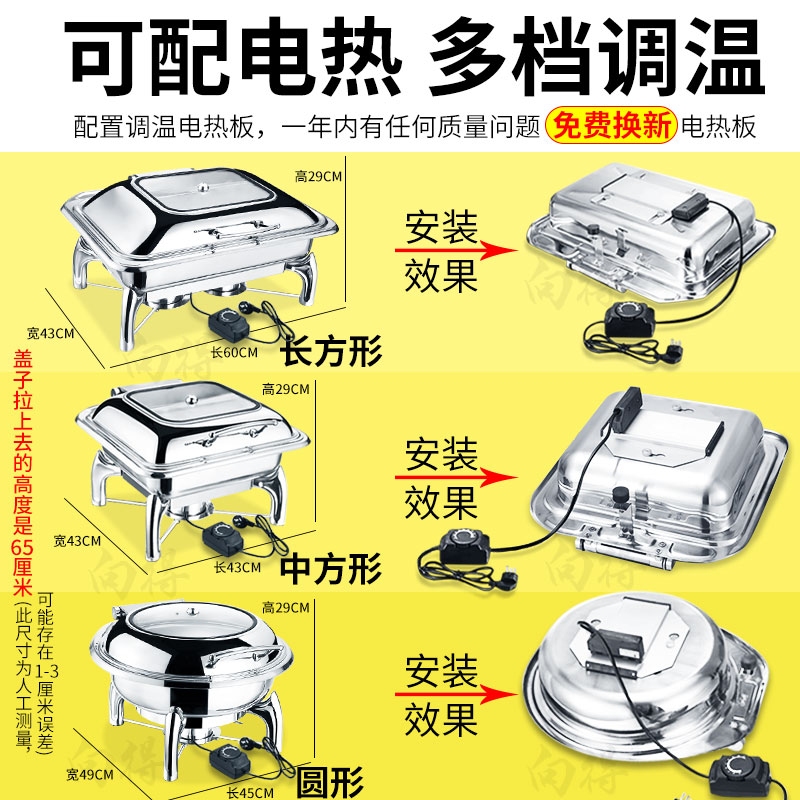 Xiangde thickened buffet furnace Stainless steel luxury hydraulic Buffy furnace Electric heating breakfast visual insulation furnace Hotel