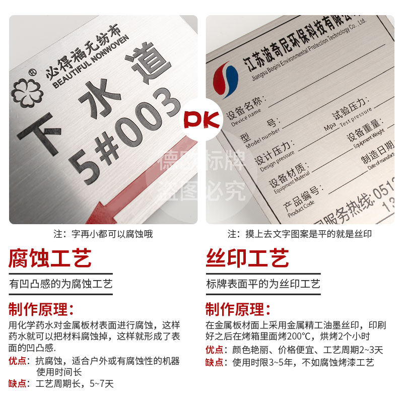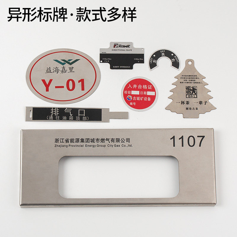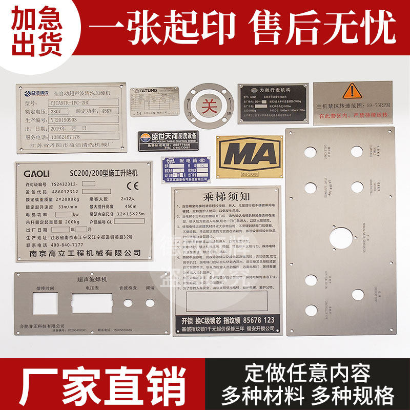 Nameplate custom machine and equipment identification Stainless steel aluminum metal screen printing corrosion lettering Laser bronze custom label